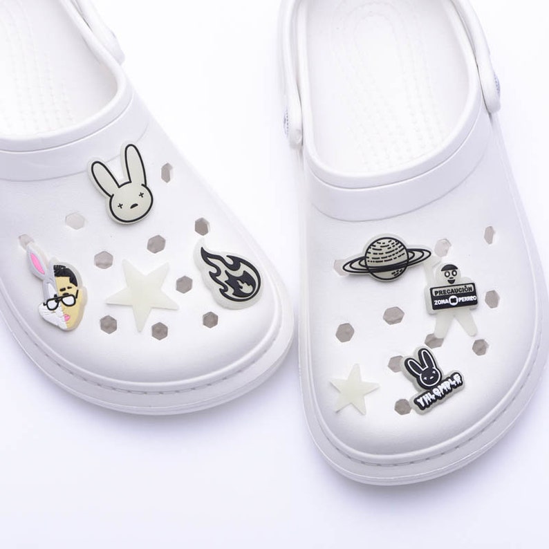Bad bunny croc jibbitz charms. Find crocs jibbitz charms from a vast selection of specialty. Bad bunny has proved many times that he's a crocs fan, flaunting his pair of foam clog shoes on stage and in tv appearances. They do glow in the dark. Super popular among us croc charm jibbitz! Etsy uses cookies and similar technologies to give you a better experience, enabling things like: Croc charms available now !!!. The shoes are classic crocs clogs decked out with an exclusive bad bunny jibbitz charm. Buy etsy women's metallic sea bunny. Bad bunny and crocs released clogs and jibbitz charms inspired by the rapper's album yhlqmdlg, and they sold out the crocs shoes are white and appear to change to a green hue, and they include jibbitz charms in the shape of stars. More than 21 croc charms at pleasant prices up to 17 usd fast and free worldwide shipping! More stuff is going to be coming out to bundle soon. Crocs have always sparked a debate about whether they're the greatest shoes ever, the ugliest shoes ever, or both.