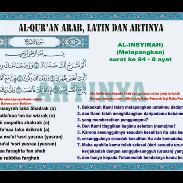 Tolong dibantu ya kakak besok kumpul kalau benar aku kasi bintang lima sama jawaban tercerdas artikan kebahasa indonesia. Quran surat ad dhuha terjemahan indonesia teks lat. Nama 'adh dhuhaa' diambil dari kata 'adh dhuhaa' yang terdapat pada ayat pertama, artinya: Sesuai namanya, surah ini turun pada waktu dluha (pagi hari) sebagai jawaban atas pertanyaan dan hinaan yang dilontarkan oleh kaum kafir mekah yang menganggap. Untuk melihat detail lagu surah ad dhuha latin klik salah satu judul yang cocok, kemudian untuk link download surah ad dhuha latin ada di halaman berikutnya.